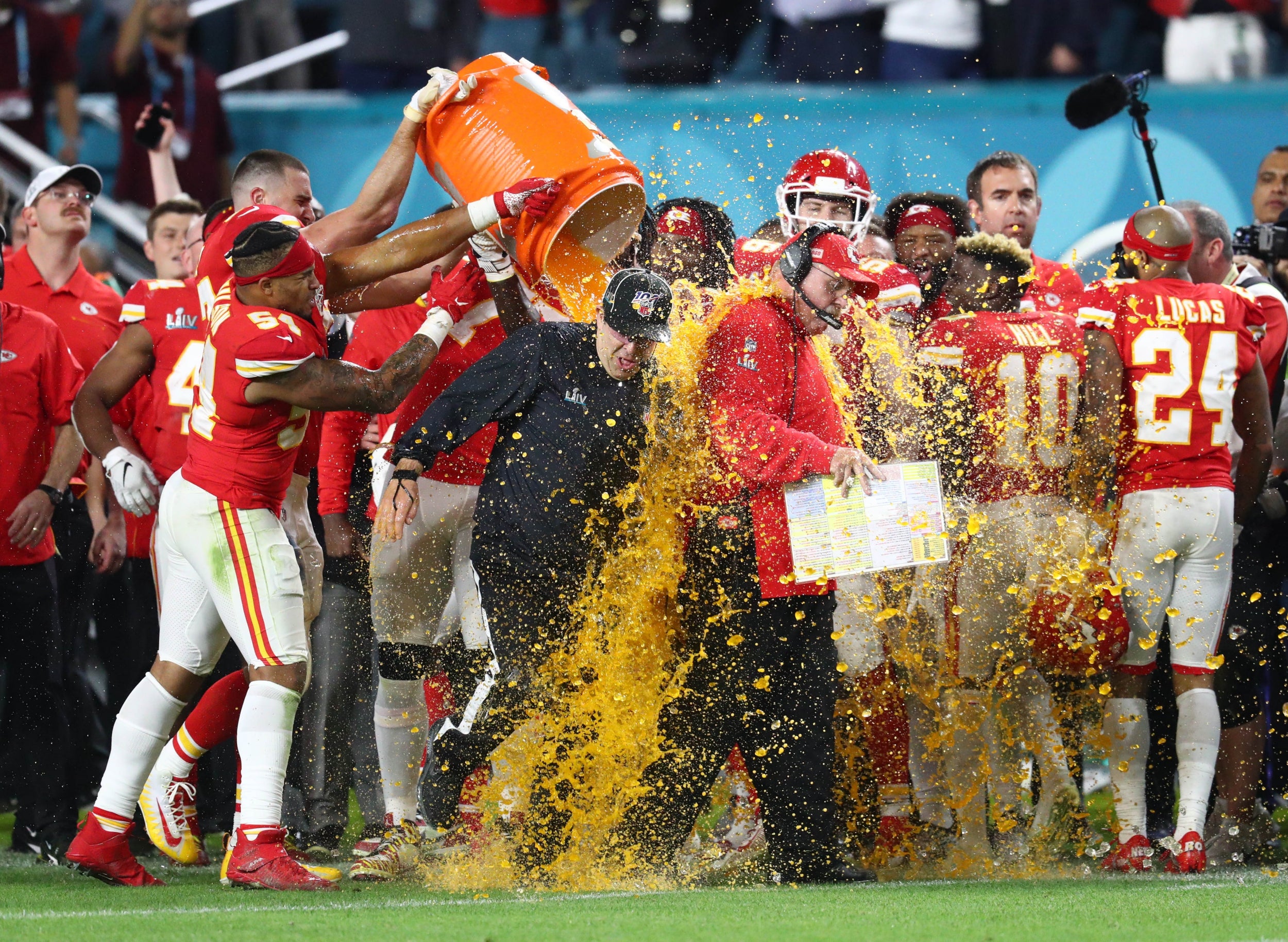 Y una vez finalizado el partido, todavía hay mucho dinero en juego en el color de la ducha de Gatorade para el entrenador ganador.